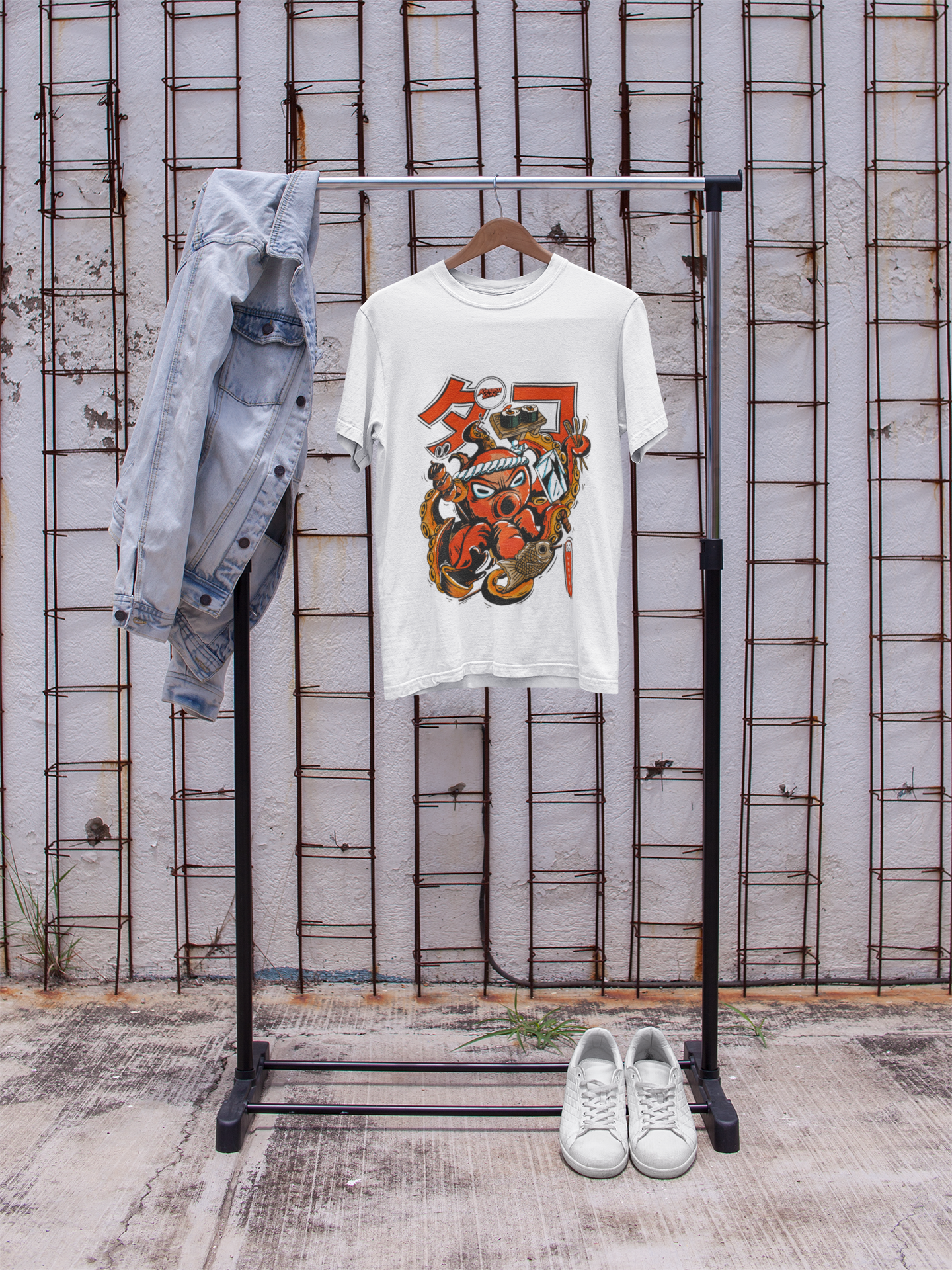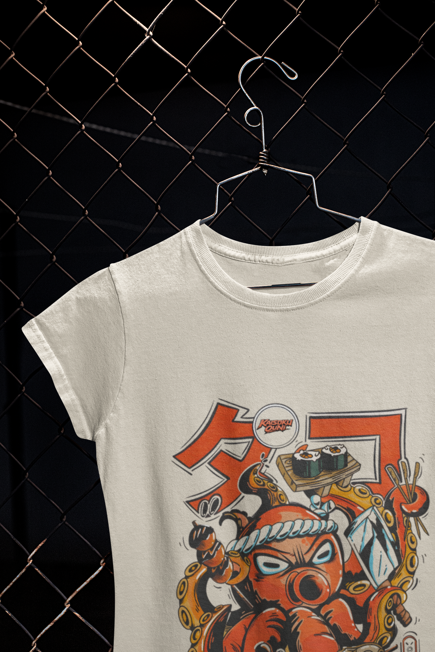Εμπνευσμένο από την ιαπωνική street κουλτούρα και την κλασική αισθητική anime, αυτό το μπλουζάκι απεικονίζει έναν άγριο πολεμιστή χταποδιού που σερβίρει σούσι με στυλ. Έντονες γραμμές, παιχνιδιάρικη επιθετικότητα και ένα γραφικό που θυμίζει κάτι σαν υπόγειο σοκάκι ράμεν.