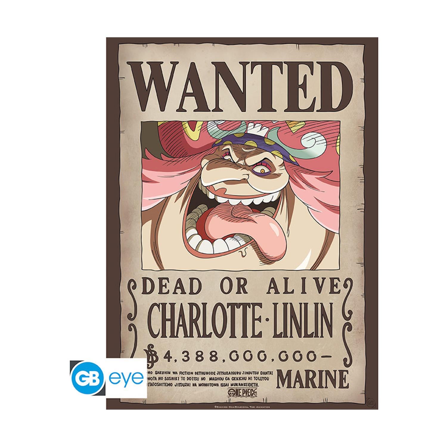 Add a touch of Emperor-level chaos to your space with the Wanted Big Mom Poster by Abysse! Featuring Charlotte Linlin, also known as Big Mom, this 52 x 38 cm chibi-style poster captures the Yonko's wild expression with her staggering bounty of 4,388,000,000 berries. Styled like an official Marine Wanted poster from the Wano arc, this collectible is perfect for any One Piece fan who appreciates the fearsome—and sometimes hilarious—presence of the Big Mom Pirates’ queen.